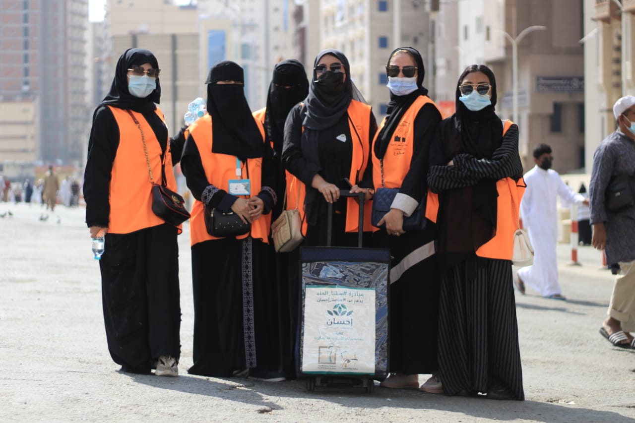 مبادره مشتركه مع الفرق التطوعيه التابعه لجمعية مراكز الأحياء وبالتعاون مع منصة إحسان في سقيا الماء لضيوف الرحمن بالحرم المكي.