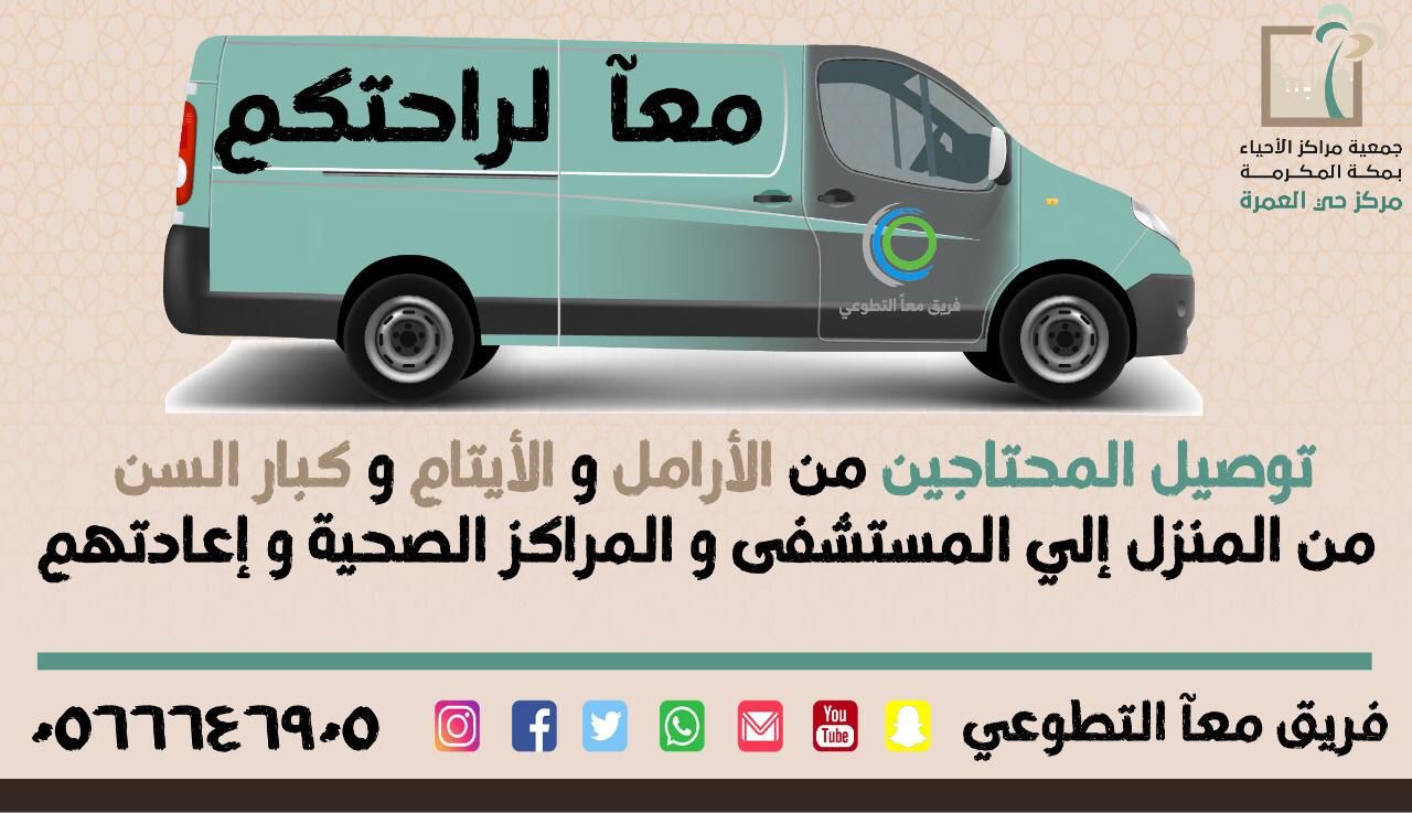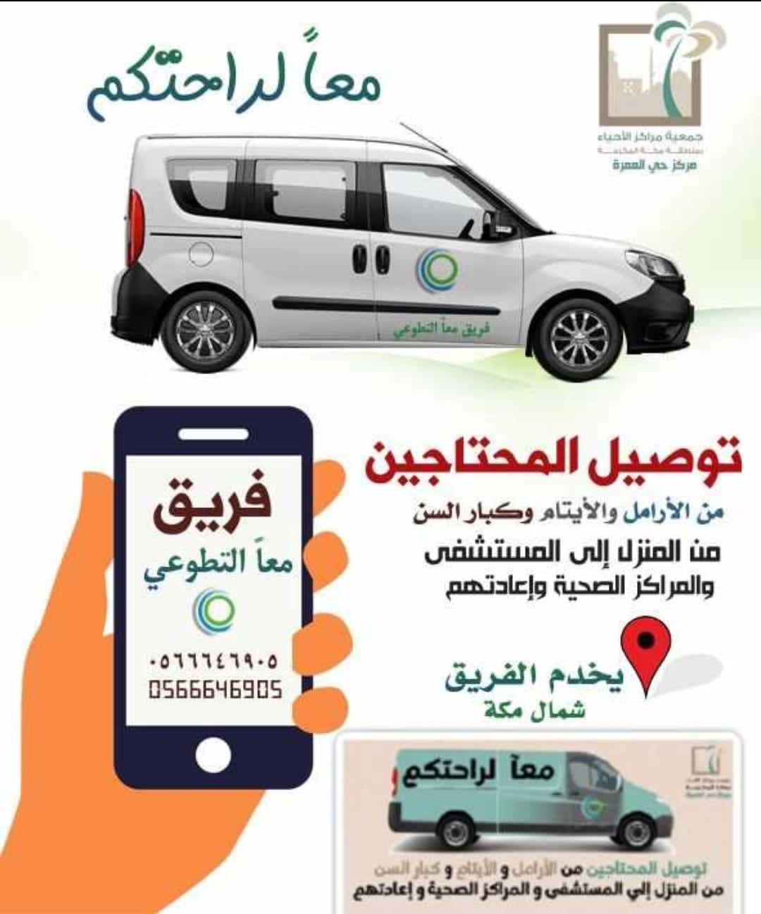 مساعدة من يحتاج للذهاب إلى المراكز الصحية أو المستشفيات وليس لدية المقدرة البدنية أو المالية على الذهاب