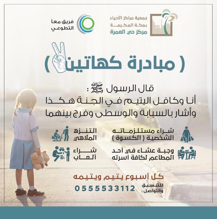 فريق تطوعي تابع لجمعية مراكز الأحياء بمكة المكرمة يهدف لتوجيه طاقات الشباب للعمل الخيري. نحدث فرقا في حياة الأخرين.